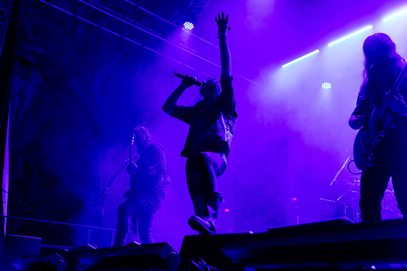 Auf die Franzosen von Soror Dolorosa freute ich mich danach besonders, feierte ich die Band bereits beim Wave Gotik Treffen in Leipzig ab und gebe zu, ein wenig Fan-Boy zu sein. Die letzten beiden Releases "Mond" und "Apollo" waren spitzenmäßiger moderner Goth/Post Punk und mit Sänger Andy Julia hat man halt so eine richtig geile Rampensau. Die drei ließen nichts anbrennen, es wurde getanzt und gesungen und man konnte den Moment zelebrieren. Man spielte fast nur treibende Songs wie die Hits 'Tear It Up' oder 'You're Giving Me' - das hob die Laune, ging ins Bein (auch so manch steifen Metallers) und setzte gut Endorphine frei. Der Gig war natürlich gefühlt viel zu schnell vorbei, die Band hatte Spaß und vor allem Sänger und Gitarrist wissen sich gut in Pose zu werfen.