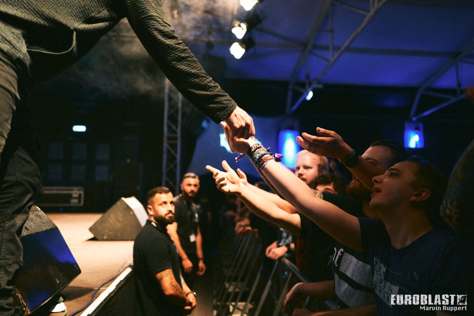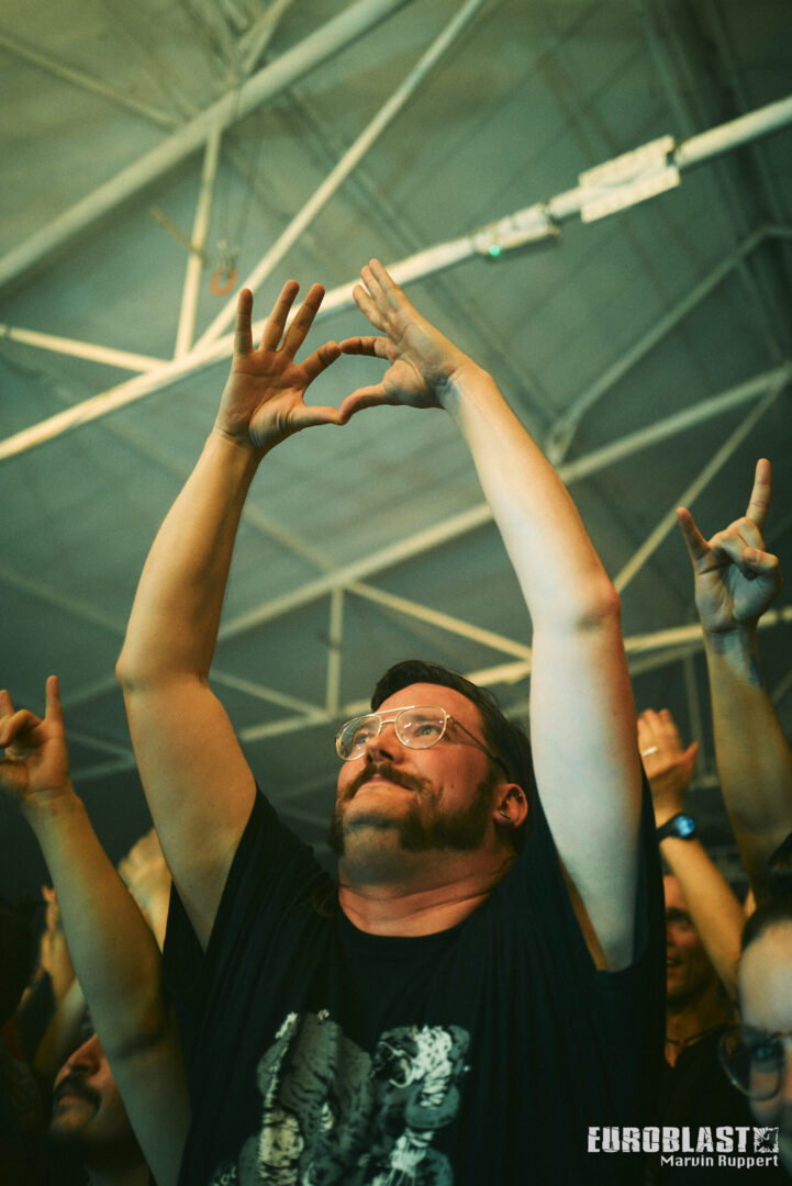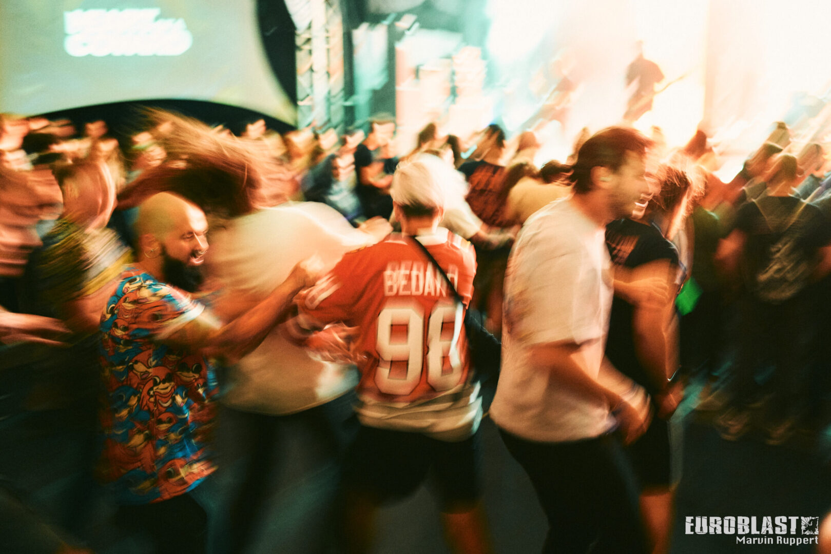 So ziemlich jeder, mit dem ich vor oder während des diesjährigen Festivals gesprochen habe, meinte sinngemäß, das diesjährige Billing sei doch ziemlich mittel. Ja, Haken und – noch weit schmerzlicher – The Dear Hunter hatten ihre Teilnahme absagen müssen. Und ja, es fehlte irgendwie ein „Killer“ als Headliner. Aber ohne, dass irgendwer damit ein größeres Problem hätte: Man geht halt einfach gerne hin – und sei es, um die „Euroblast Family“ zu treffen. Beziehungsweise im Falle des Autoren sogar seine fast vollständig angetretene Graspop Familie. Hinzu kam noch ein zumindest am Samstag und Sonntag ausgesprochen gnädiges Frühherbstwetter. Und es gab noch weitere Entwicklungen, die #EB25 doch noch zu einem ganz besonderen Jahrgang machten…