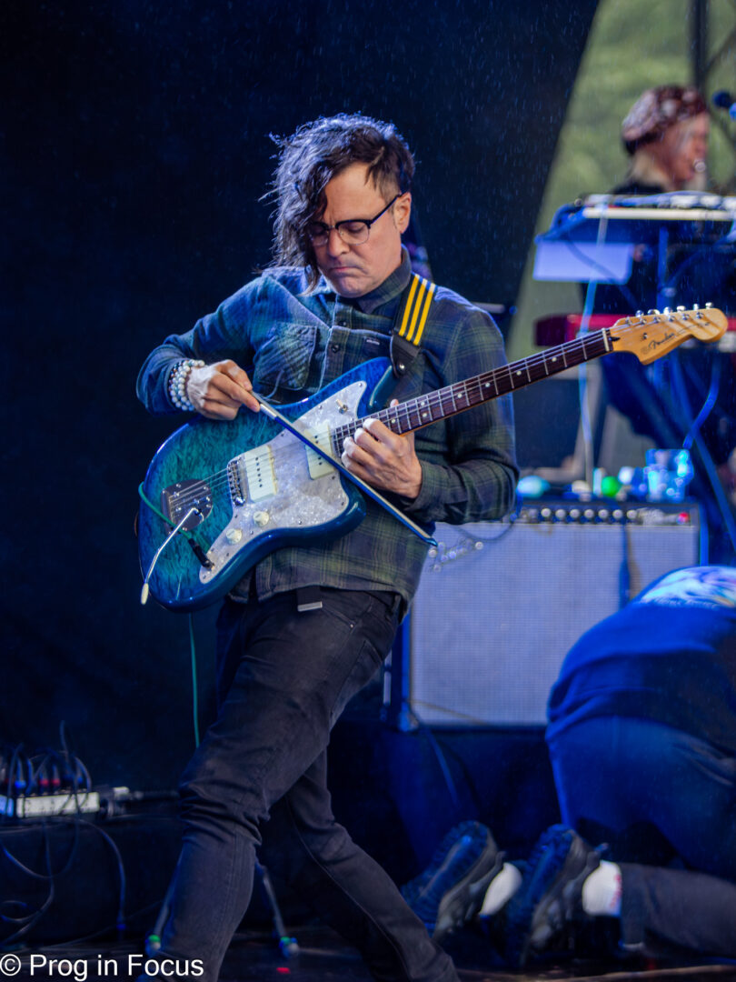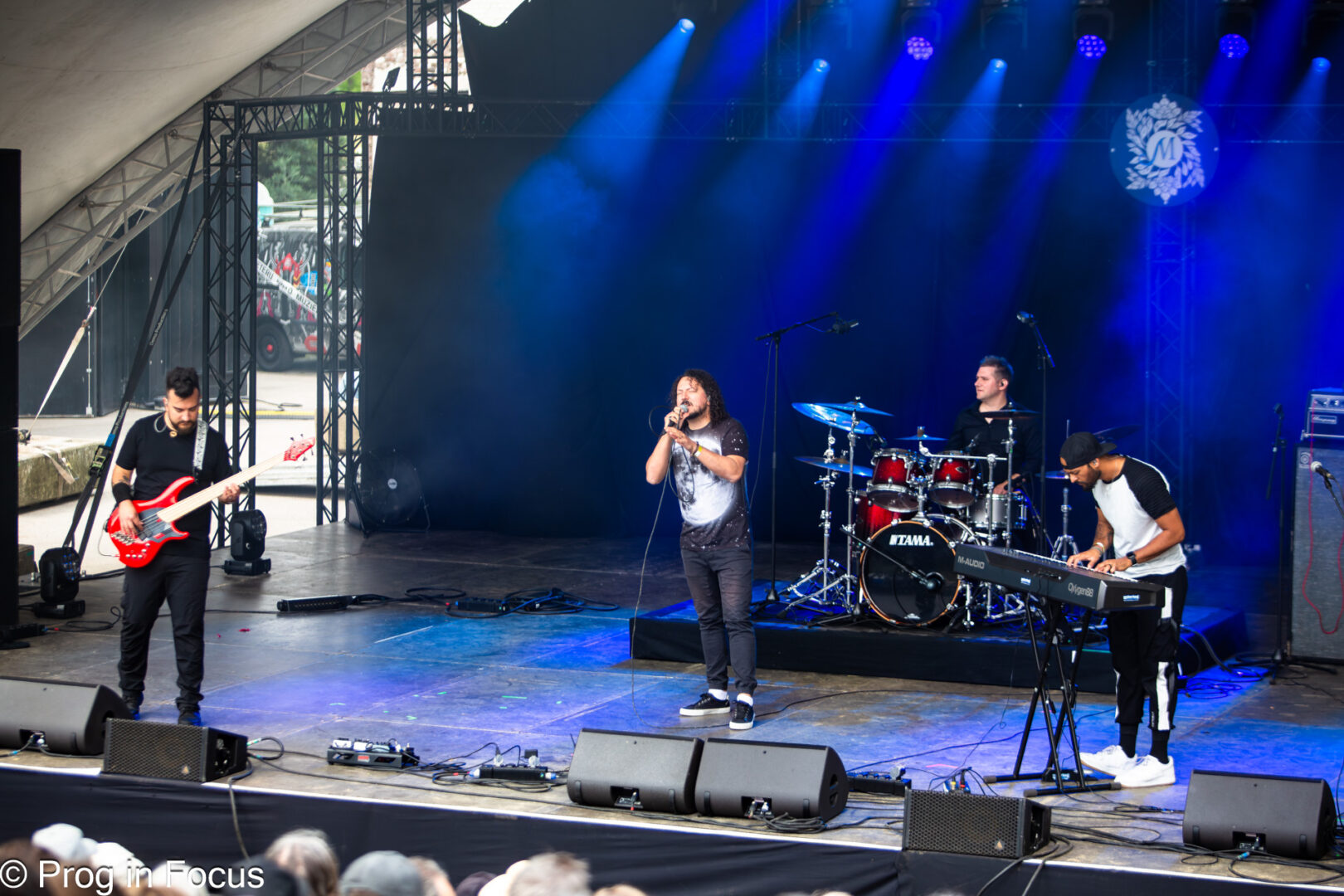 Weit weniger begeistert vom Wetter und einigen technischen Schwierigkeiten zeigte sich die finnische Band Wheel mit ihrem englischen Frontmann James Lascelles. Zumindest anfangs konnte man einen gewissen Frust auf den Gesichtern der Musiker erkennen.