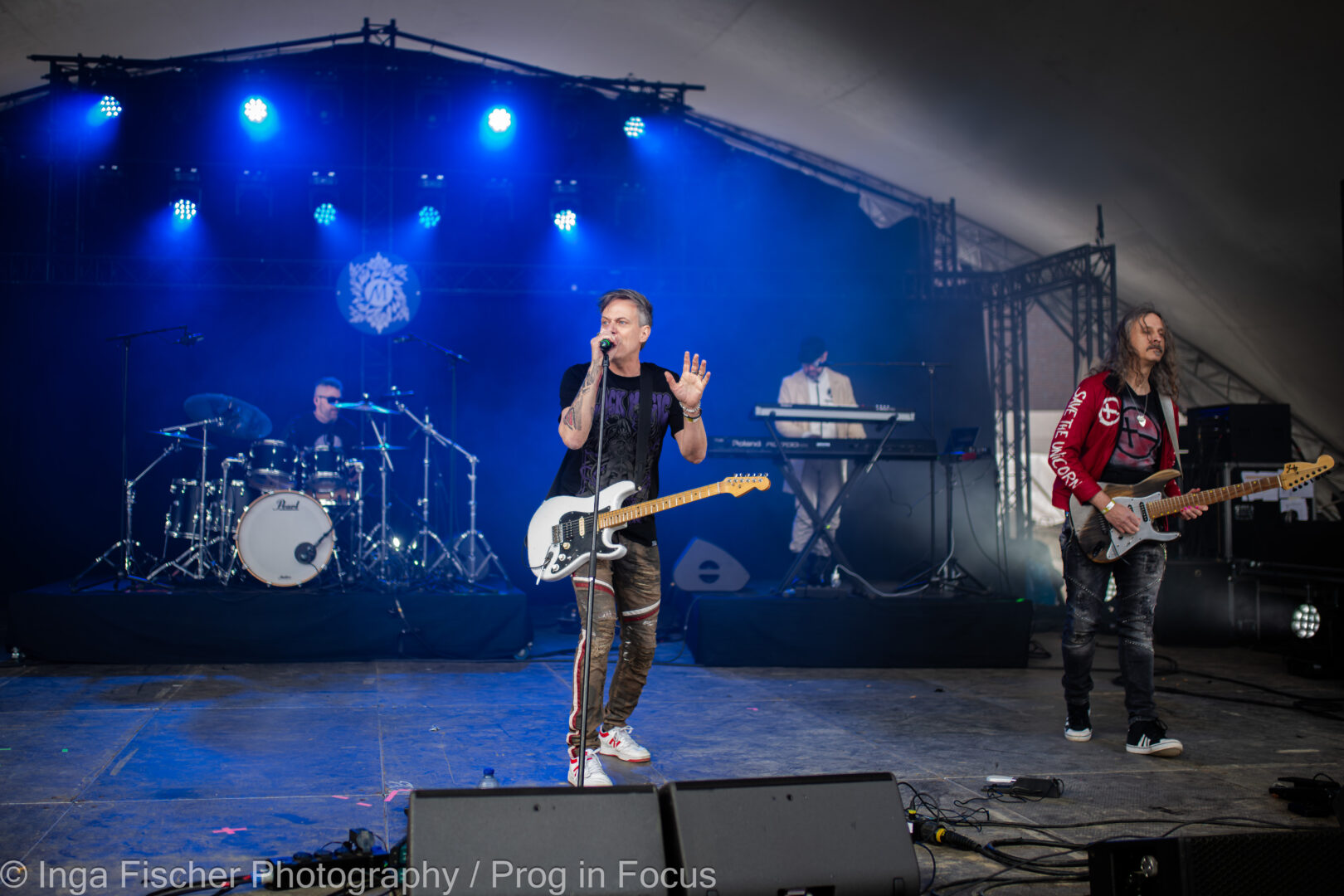 Ich muss es gleich vorwegschicken: Ich gehöre nicht zu den glühendsten Verehrern deutscher Prog- und Artrock-Kapellen. Weder RPWL noch Sylvan laufen bei mir in regelmäßiger Rotation, und doch – das hat die Vergangenheit immer wieder gezeigt – entwickeln gerade diese Bands auf Festivals eine ganz eigene, angenehm kurzweilige Dynamik. So auch an diesem verregneten Samstagnachmittag, an dem das Hamburger Quintett um Frontmann Marco Glühmann die Bühne betrat.