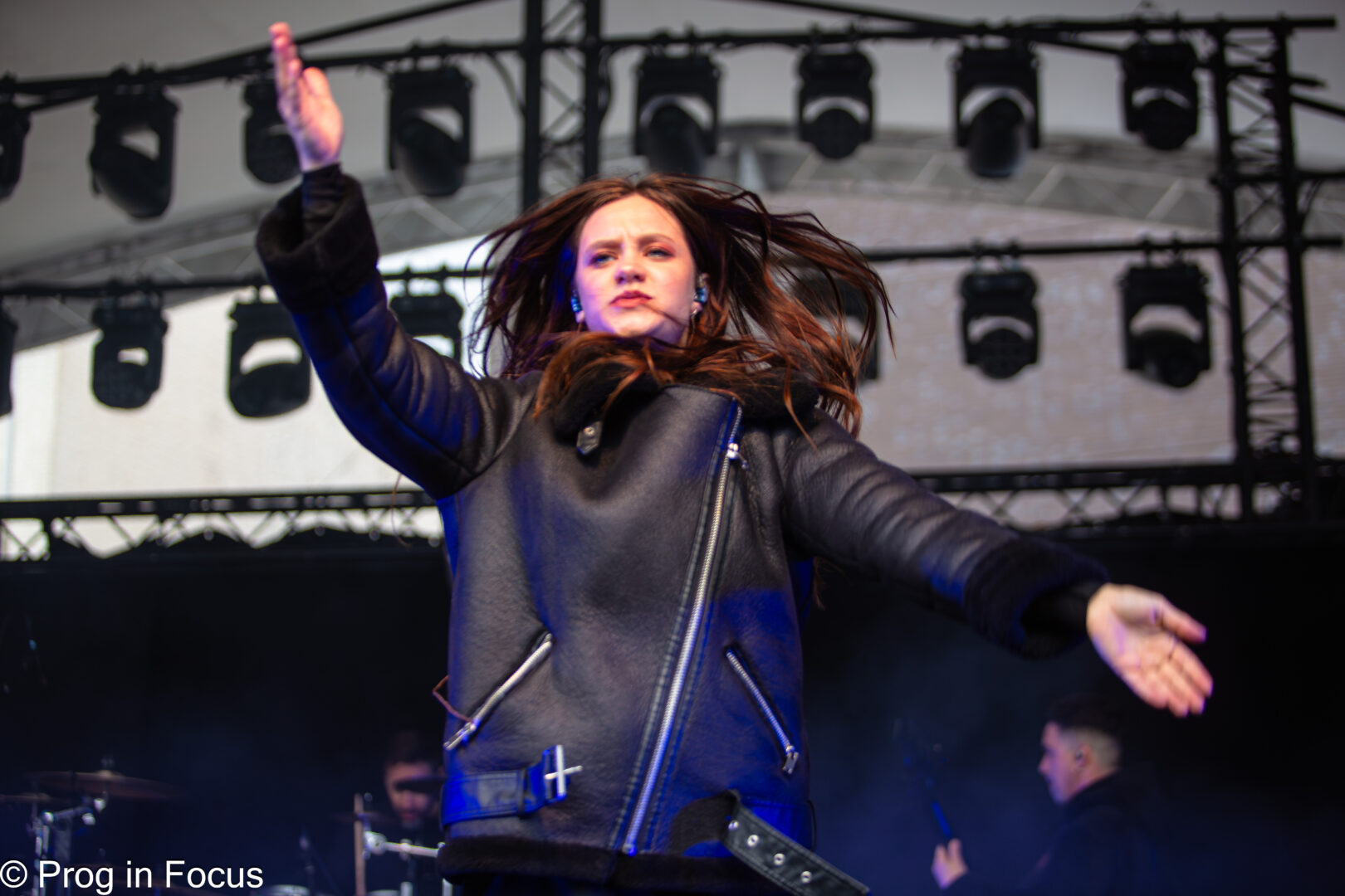 Spielfreudig, souverän, aber ohne übertriebene Gesten starteten Sylvan in ihr Set. Der Opener 'In Between' zeigte die Band druckvoll und fokussiert, während 'Encoded At Heart' die fragilere, beinahe intime Seite des Prog-Kosmos präsentierte. Als schließlich 'The Colours Changed' – begleitet von kurz aufblitzenden Sonnenstrahlen – den ersten Ausflug in Richtung des Bandklassikers 'Posthumous Silence' markierte, sah man im Publikum vereinzelte optimistische Blicke gen Himmel. Vielleicht, so dachte man, würde dieser Nachmittag doch noch trocknen.