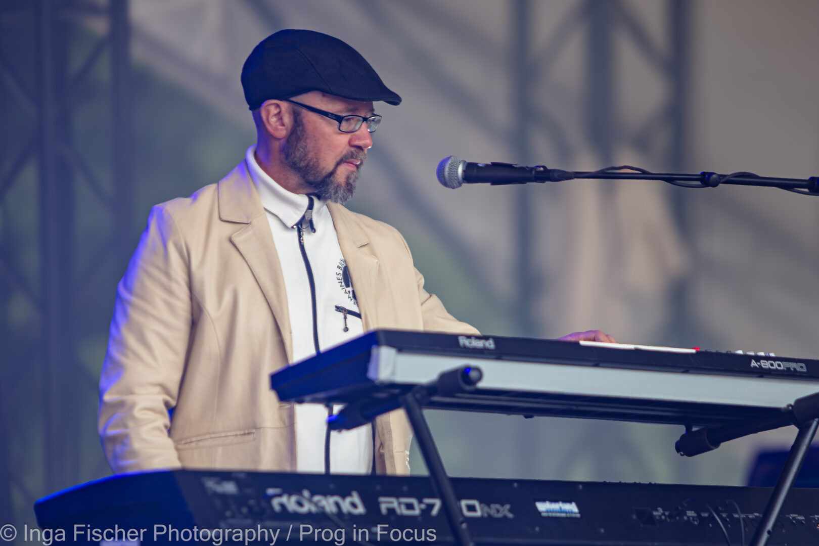 Ich muss es gleich vorwegschicken: Ich gehöre nicht zu den glühendsten Verehrern deutscher Prog- und Artrock-Kapellen. Weder RPWL noch Sylvan laufen bei mir in regelmäßiger Rotation, und doch – das hat die Vergangenheit immer wieder gezeigt – entwickeln gerade diese Bands auf Festivals eine ganz eigene, angenehm kurzweilige Dynamik. So auch an diesem verregneten Samstagnachmittag, an dem das Hamburger Quintett um Frontmann Marco Glühmann die Bühne betrat.